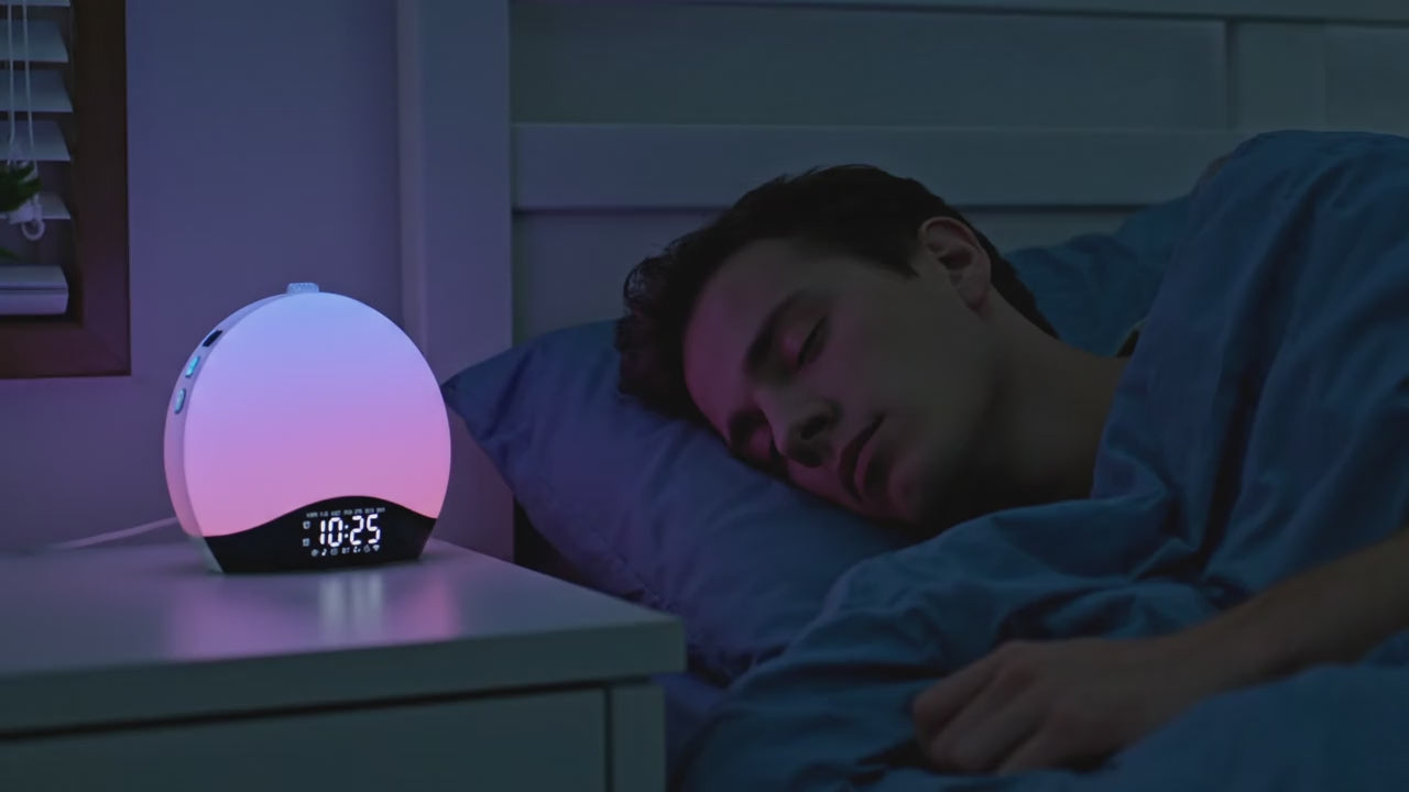 AuroraRise™ is designed to transform how your mornings feel. Instead of being jolted awake, you’re gently guided from sleep to wakefulness using gradual, sunrise-inspired light and optional sound — helping mornings feel calmer, more natural, and more intentional.